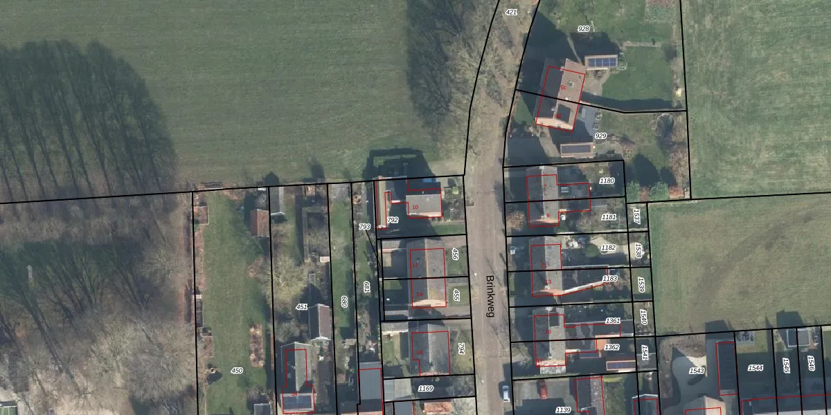Het perceel waarop Brinkweg 10 staat heeft een oppervlakte van 306 m². Dit is een groot perceel. De perceeloppervlakte wordt geregistreerd door het Kadaster. Gedetailleerde informatie over de maten van dit perceel kunt u vinden in het rapport Kadastrale kaart met maatvoering van Brinkweg 10.