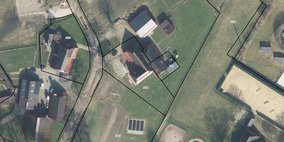 Het perceel waarop Brinkweg 5 staat heeft een oppervlakte van 1280 m². Dit is een zeer groot perceel. De perceeloppervlakte wordt geregistreerd door het Kadaster. Gedetailleerde informatie over de maten van dit perceel kunt u vinden in het rapport Kadastrale kaart met maatvoering van Brinkweg 5.