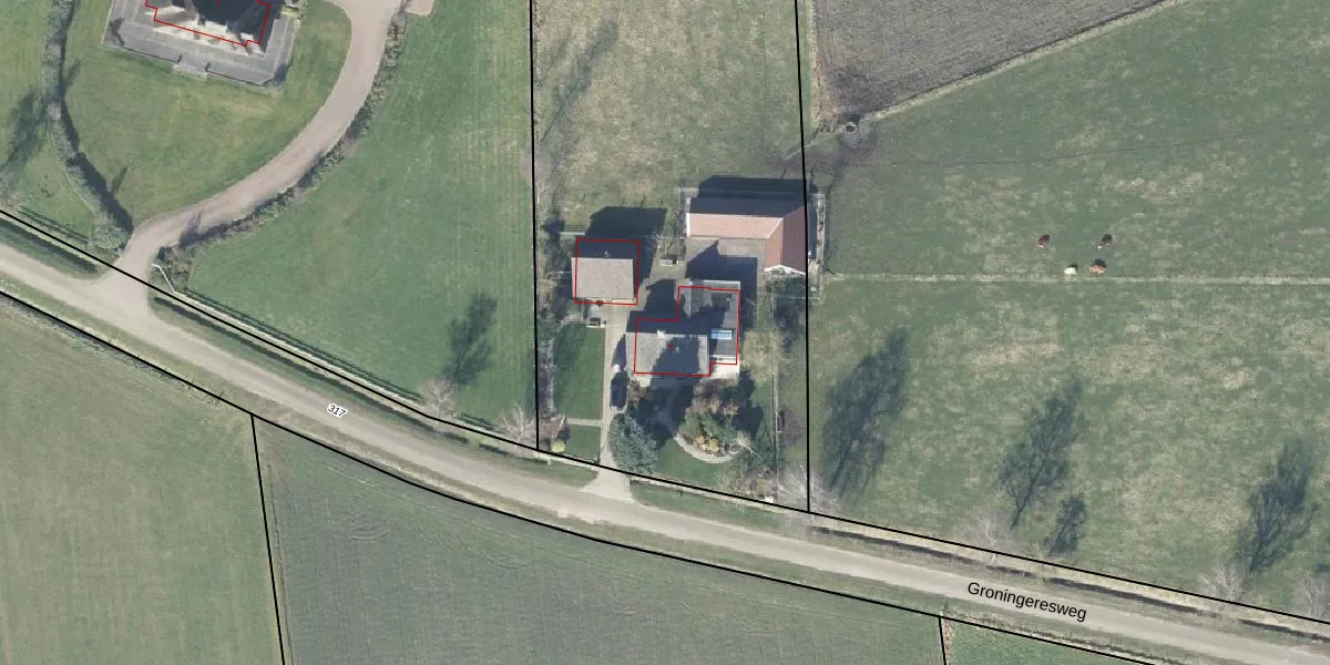 Het perceel waarop Groningeresweg 3 staat heeft een oppervlakte van 3,8 ha. Dit is een zeer groot perceel. De perceeloppervlakte wordt geregistreerd door het Kadaster. Gedetailleerde informatie over de maten van dit perceel kunt u vinden in het rapport Kadastrale kaart met maatvoering van Groningeresweg 3.