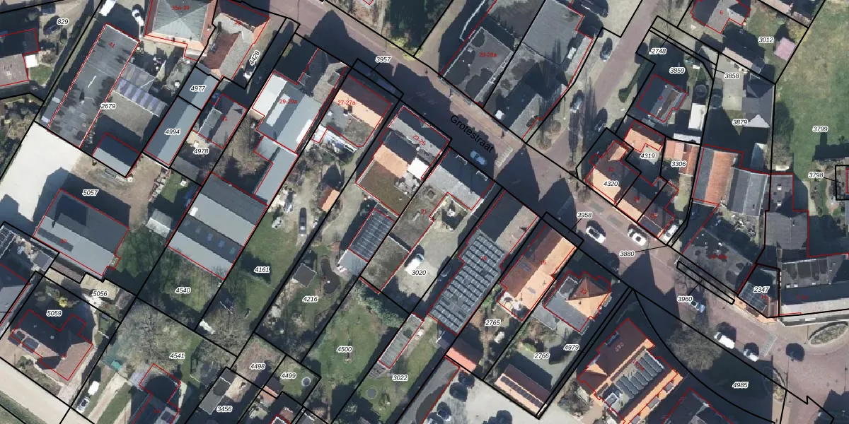 Het perceel waarop Grotestraat 21 staat heeft een oppervlakte van 578 m². Dit is een groot perceel. De perceeloppervlakte wordt geregistreerd door het Kadaster. Gedetailleerde informatie over de maten van dit perceel kunt u vinden in het rapport Kadastrale kaart met maatvoering van Grotestraat 21.