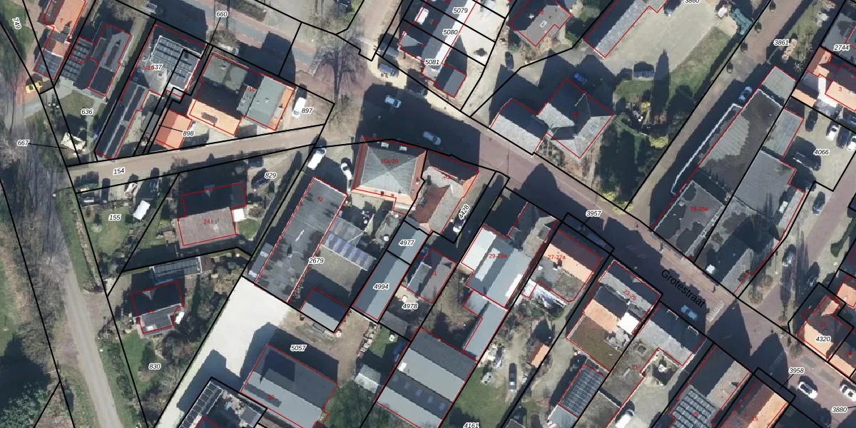 Het perceel waarop Grotestraat 33 staat heeft een oppervlakte van 262 m². Dit is een middelgroot perceel. De perceeloppervlakte wordt geregistreerd door het Kadaster. Gedetailleerde informatie over de maten van dit perceel kunt u vinden in het rapport Kadastrale kaart met maatvoering van Grotestraat 33.
