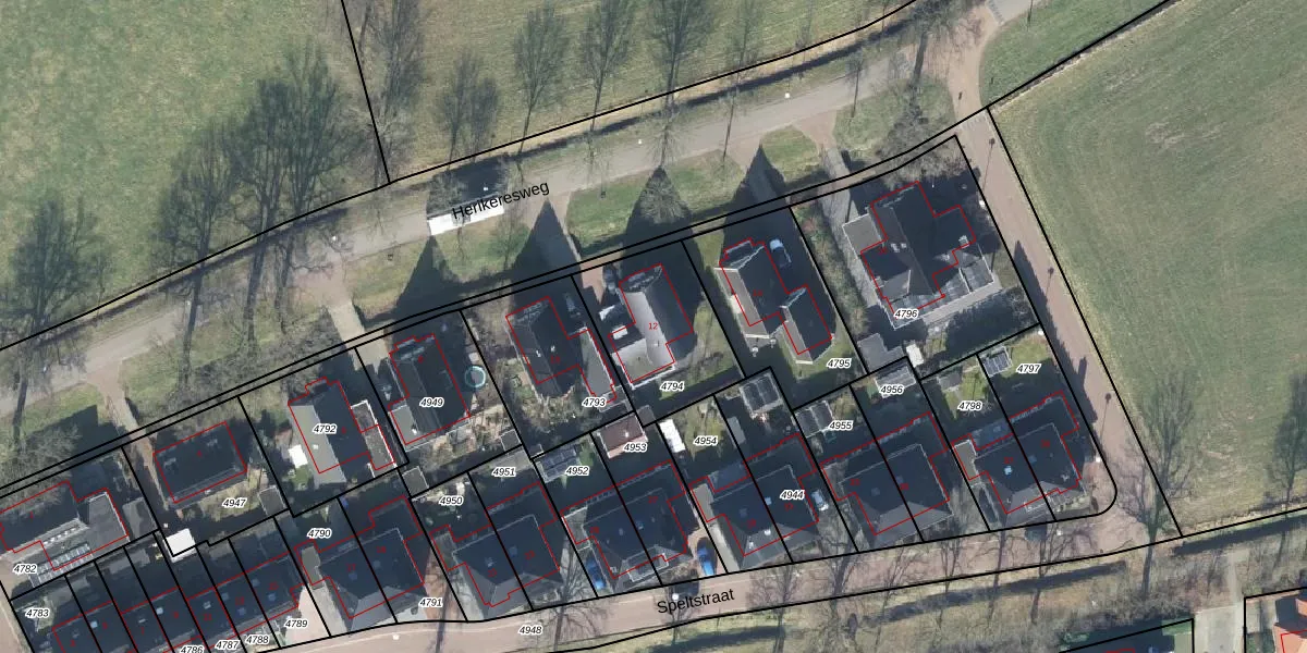 Het perceel waarop Herikeresweg 12 staat heeft een oppervlakte van 432 m². Dit is een groot perceel. De perceeloppervlakte wordt geregistreerd door het Kadaster. Gedetailleerde informatie over de maten van dit perceel kunt u vinden in het rapport Kadastrale kaart met maatvoering van Herikeresweg 12.