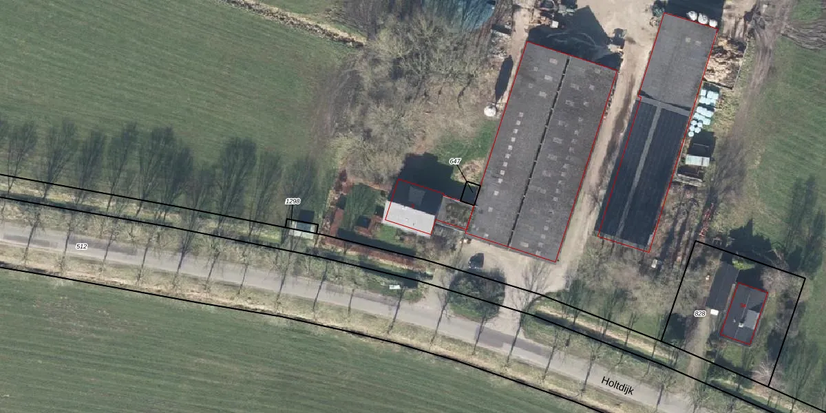 Het perceel waarop Holtdijk 3 staat heeft een oppervlakte van 23,2 ha. Dit is een zeer groot perceel. De perceeloppervlakte wordt geregistreerd door het Kadaster. Gedetailleerde informatie over de maten van dit perceel kunt u vinden in het rapport Kadastrale kaart met maatvoering van Holtdijk 3.