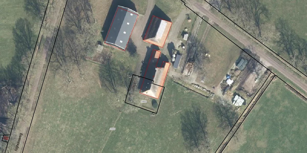 Het perceel waarop het adres ligt is MKL00-Q-1433. De afkorting 'MKL00' staat voor kadastrale gemeente Markelo. De oppervlakte van het perceel is 1,9 ha. Dat is groter dan gemiddeld in Markelo, waar de gemiddelde perceeloppervlakte op 1,1 ha ligt. Het kleinste perceel in de kadastrale gemeente is 0 m² groot. De grootste perceeloppervlakte is 88,0 ha. Er zijn geen andere adressen aanwezig op het perceel. De laatste wijziging in het de Basisregistratie Kadaster (BRK) was op 22-03-2016.