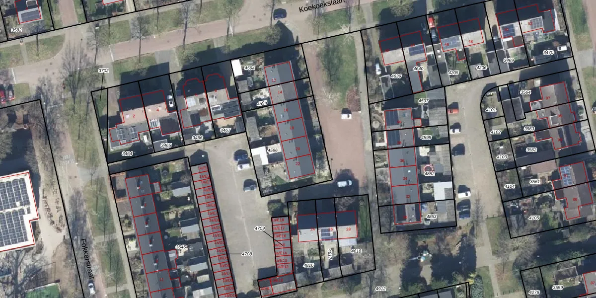 Het perceel waarop Koekoekslaan 20 staat heeft een oppervlakte van 716 m². Dit is een groot perceel. De perceeloppervlakte wordt geregistreerd door het Kadaster. Gedetailleerde informatie over de maten van dit perceel kunt u vinden in het rapport Kadastrale kaart met maatvoering van Koekoekslaan 20.