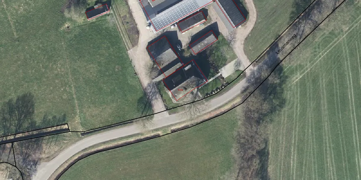 Het perceel waarop Leusmanweg 5-a staat heeft een oppervlakte van 9,9 ha. Dit is een zeer groot perceel. De perceeloppervlakte wordt geregistreerd door het Kadaster. Gedetailleerde informatie over de maten van dit perceel kunt u vinden in het rapport Kadastrale kaart met maatvoering van Leusmanweg 5-a.