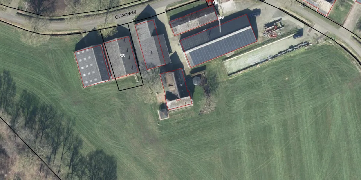 Het perceel waarop Ovinksweg 3-a staat heeft een oppervlakte van 3,4 ha. Dit is een zeer groot perceel. De perceeloppervlakte wordt geregistreerd door het Kadaster. Gedetailleerde informatie over de maten van dit perceel kunt u vinden in het rapport Kadastrale kaart met maatvoering van Ovinksweg 3-a.