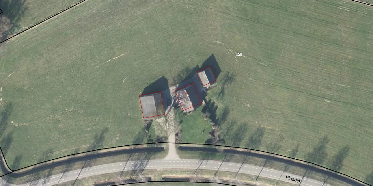 Het perceel waarop Plasdijk 19 staat heeft een oppervlakte van 2,2 ha. Dit is een zeer groot perceel. De perceeloppervlakte wordt geregistreerd door het Kadaster. Gedetailleerde informatie over de maten van dit perceel kunt u vinden in het rapport Kadastrale kaart met maatvoering van Plasdijk 19.