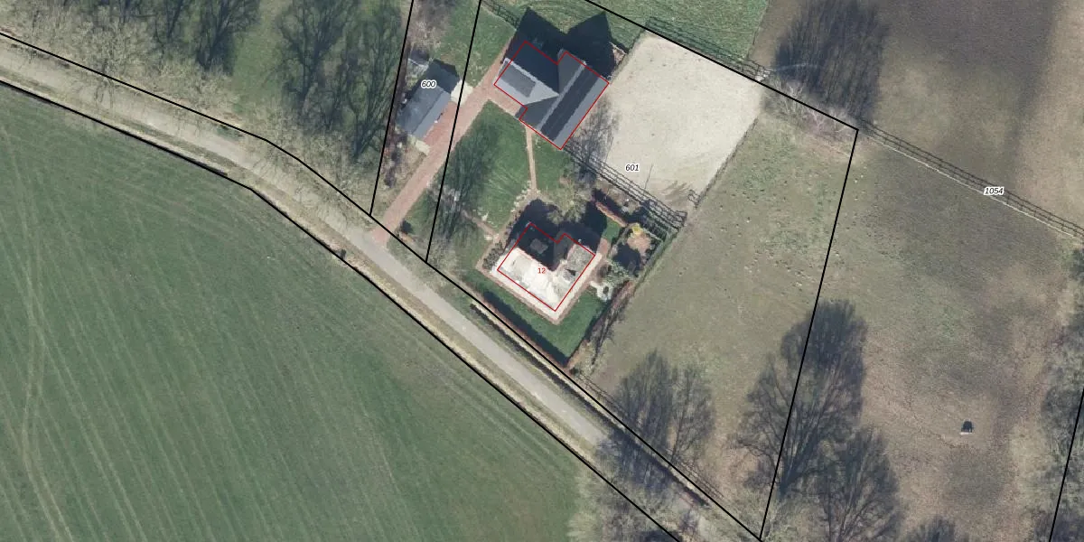 Postweg 12 is gelegen op kadastraal perceel MKL00O601. Deze kadastrale aanduiding is uniek en wordt gebruikt door het Kadaster om eigendomsrechten en andere zakelijke rechten vast te leggen. Het perceel maakt onderdeel uit van de kadastrale gemeente Markelo.