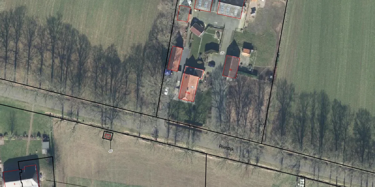 Het perceel waarop Rietdijk 8-a staat heeft een oppervlakte van 4610 m². Dit is een zeer groot perceel. De perceeloppervlakte wordt geregistreerd door het Kadaster. Gedetailleerde informatie over de maten van dit perceel kunt u vinden in het rapport Kadastrale kaart met maatvoering van Rietdijk 8-a.