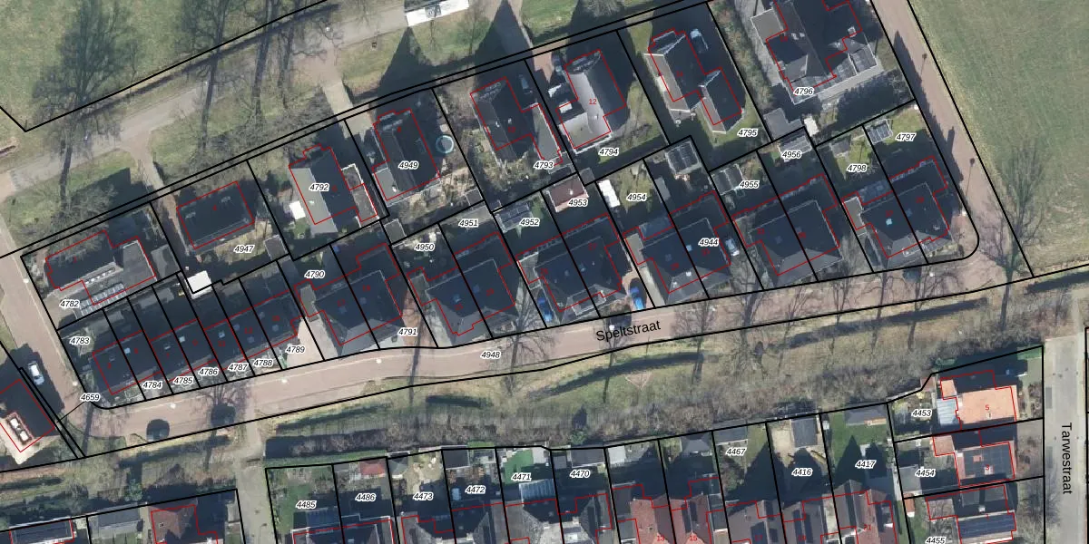 Het perceel waarop Speltstraat 25 staat heeft een oppervlakte van 243 m². Dit is een middelgroot perceel. De perceeloppervlakte wordt geregistreerd door het Kadaster. Gedetailleerde informatie over de maten van dit perceel kunt u vinden in het rapport Kadastrale kaart met maatvoering van Speltstraat 25.