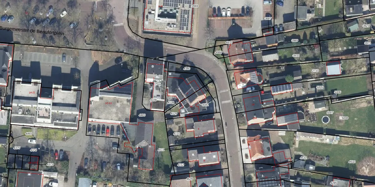 Gebruik de zoekbalk of klik op een perceel voor informatie over de adressen binnen dit perceel.