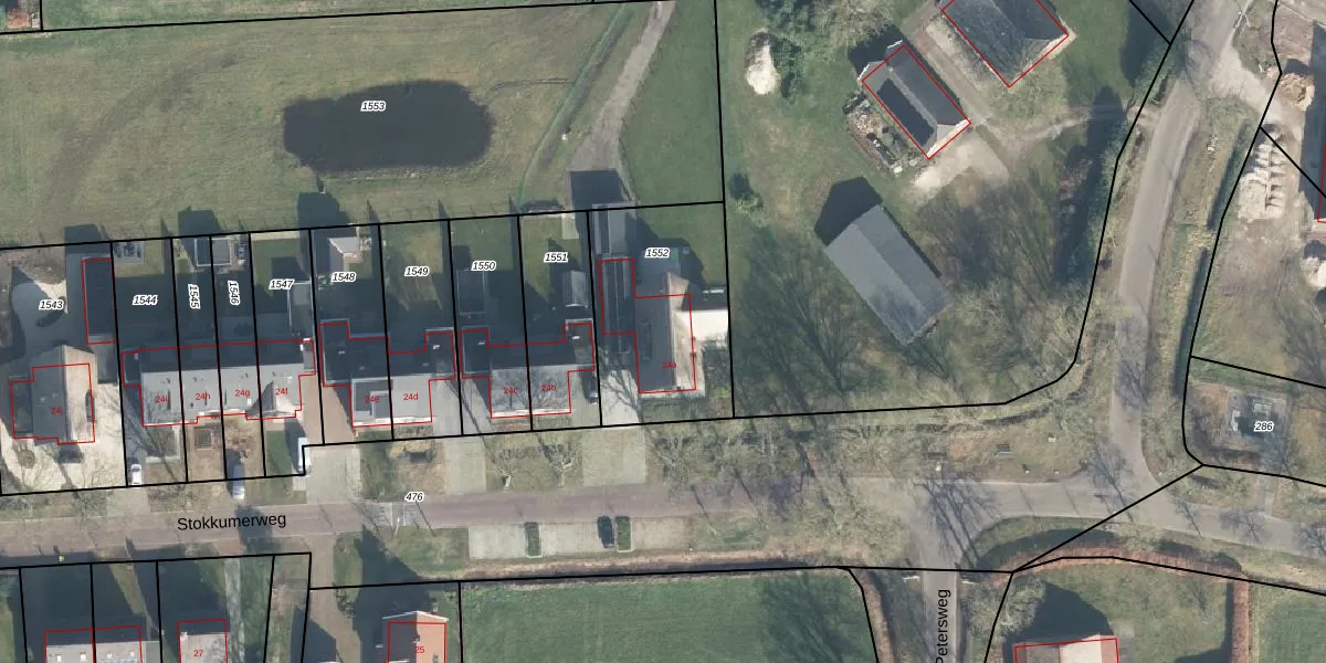 Het perceel waarop Stokkumerweg 24-a staat heeft een oppervlakte van 669 m². Dit is een groot perceel. De perceeloppervlakte wordt geregistreerd door het Kadaster. Gedetailleerde informatie over de maten van dit perceel kunt u vinden in het rapport Kadastrale kaart met maatvoering van Stokkumerweg 24-a.