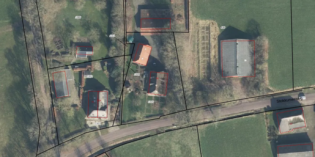 Het perceel waarop Stokkumerweg 50 staat heeft een oppervlakte van 1895 m². Dit is een zeer groot perceel. De perceeloppervlakte wordt geregistreerd door het Kadaster. Gedetailleerde informatie over de maten van dit perceel kunt u vinden in het rapport Kadastrale kaart met maatvoering van Stokkumerweg 50.