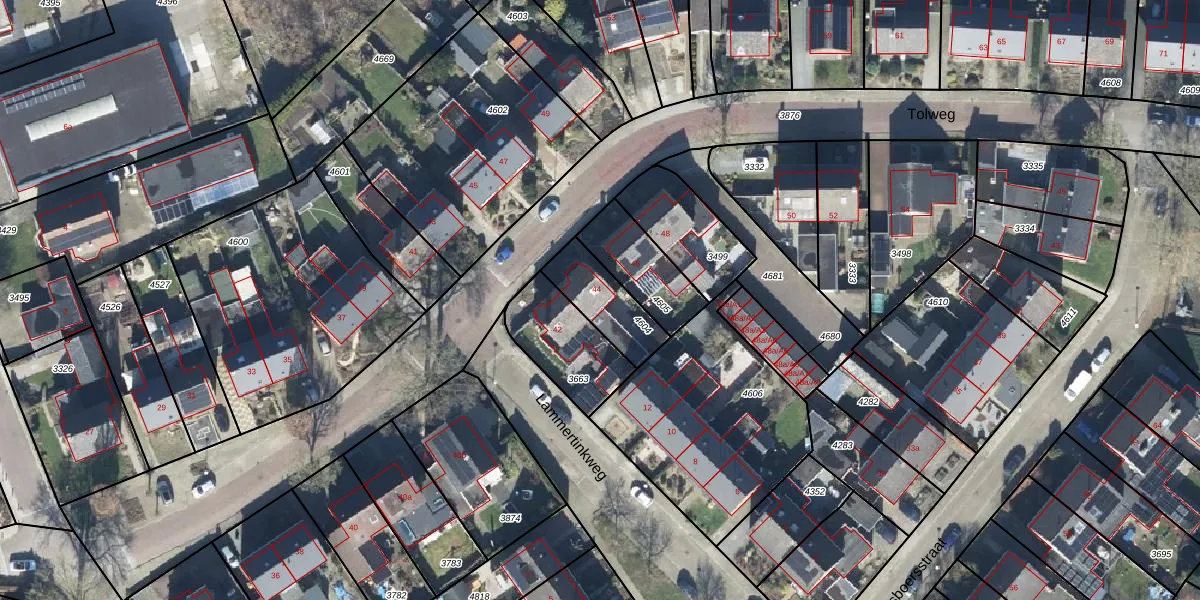 Het perceel waarop Tolweg 44 staat heeft een oppervlakte van 185 m². Dit is een middelgroot perceel. De perceeloppervlakte wordt geregistreerd door het Kadaster. Gedetailleerde informatie over de maten van dit perceel kunt u vinden in het rapport Kadastrale kaart met maatvoering van Tolweg 44.
