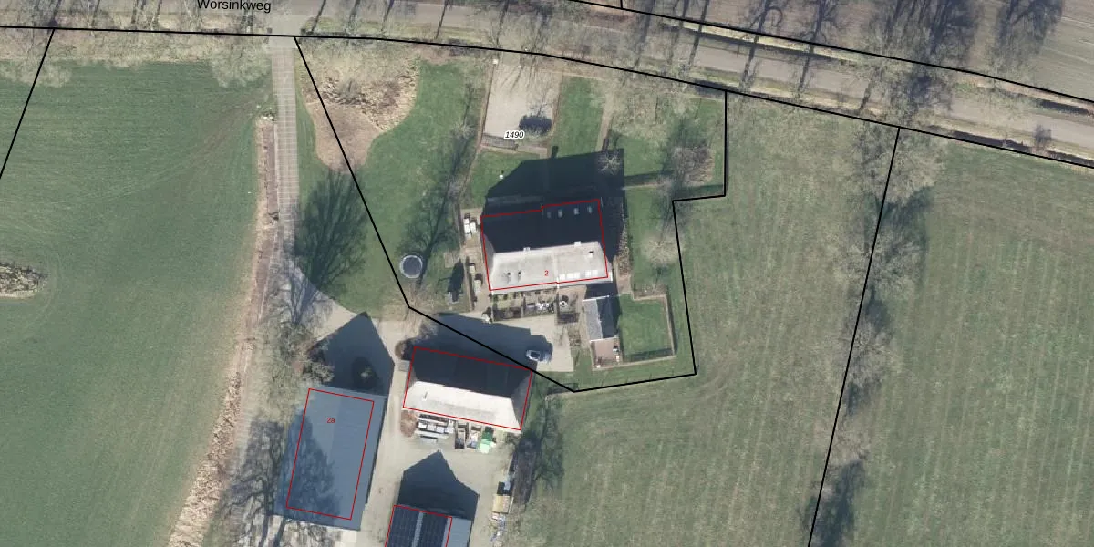 Worsinkweg 2 is gelegen op kadastraal perceel MKL00N1490. Deze kadastrale aanduiding is uniek en wordt gebruikt door het Kadaster om eigendomsrechten en andere zakelijke rechten vast te leggen. Het perceel maakt onderdeel uit van de kadastrale gemeente Markelo.