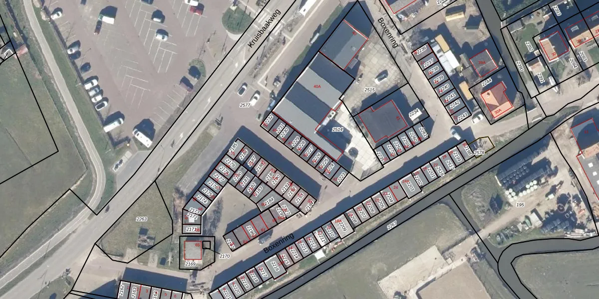 Het perceel waarop Boxenring 46 staat heeft een oppervlakte van 20 m². Dit is een klein perceel. De perceeloppervlakte wordt geregistreerd door het Kadaster. Gedetailleerde informatie over de maten van dit perceel kunt u vinden in het rapport Kadastrale kaart met maatvoering van Boxenring 46.