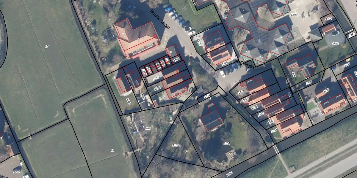 Gebruik de zoekbalk of klik op een perceel voor informatie over de adressen binnen dit perceel.