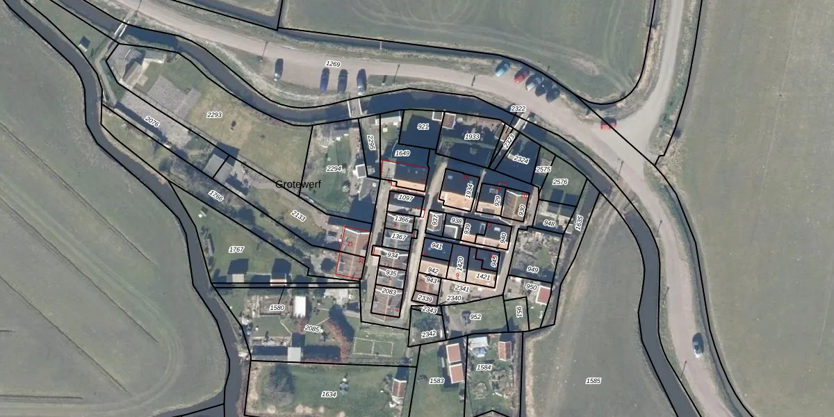 Het perceel waarop Grotewerf 2 staat heeft een oppervlakte van 38 m². Dit is een klein perceel. De perceeloppervlakte wordt geregistreerd door het Kadaster. Gedetailleerde informatie over de maten van dit perceel kunt u vinden in het rapport Kadastrale kaart met maatvoering van Grotewerf 2.