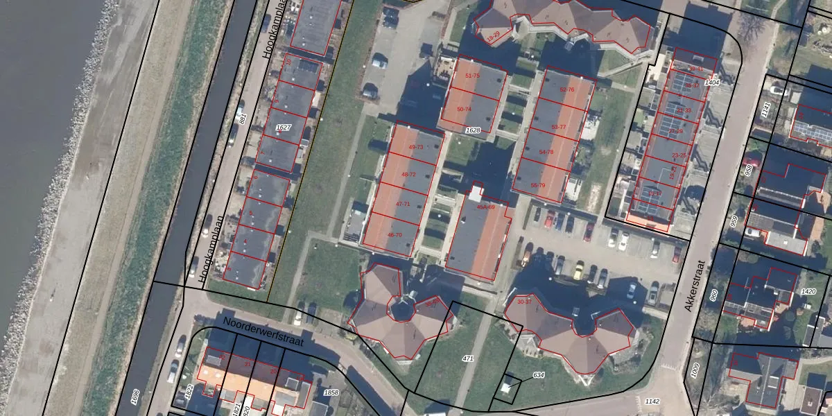 Het adres ligt op het perceel MKN00-C-1628, dat zich in de kadastrale gemeente Marken bevindt. De gemiddelde perceelgrootte in Marken is 2,4 ha. Dit perceel is kleiner: de perceeloppervlakte bedraagt 7310 m². Het grootste perceel in de kadastrale gemeente is 25,73 km². Het kleinste perceel heeft een oppervlakte van 0 m². Op het perceel liggen in totaal 63 adressen. De huidige grenzen van het perceel zijn digitaal in de Basisregistratie Kadaster (BRK) geregistreerd op 13-11-2025.
