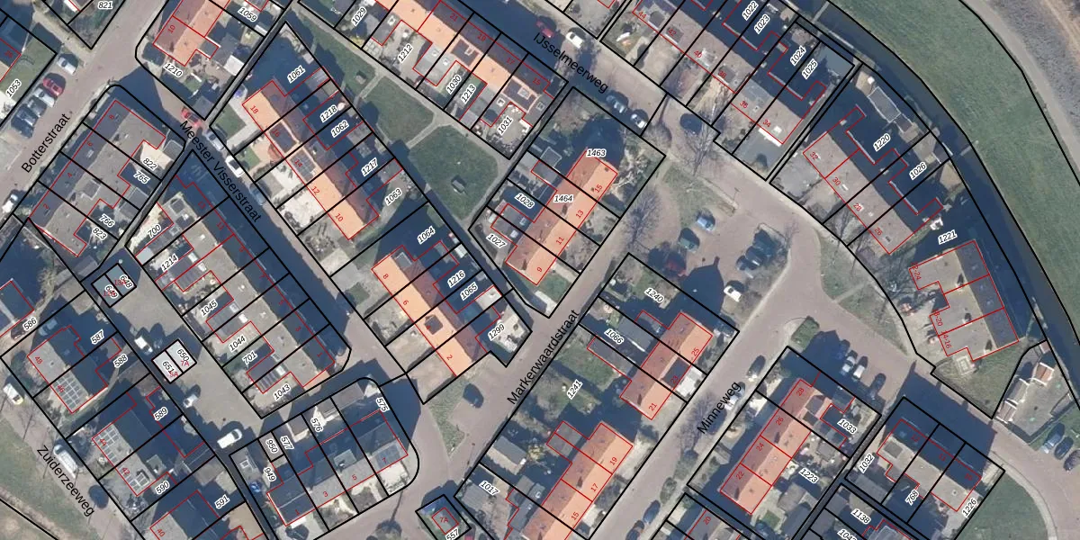 Het perceel waarop Markerwaardstraat 9 staat heeft een oppervlakte van 181 m². Dit is een middelgroot perceel. De perceeloppervlakte wordt geregistreerd door het Kadaster. Gedetailleerde informatie over de maten van dit perceel kunt u vinden in het rapport Kadastrale kaart met maatvoering van Markerwaardstraat 9.