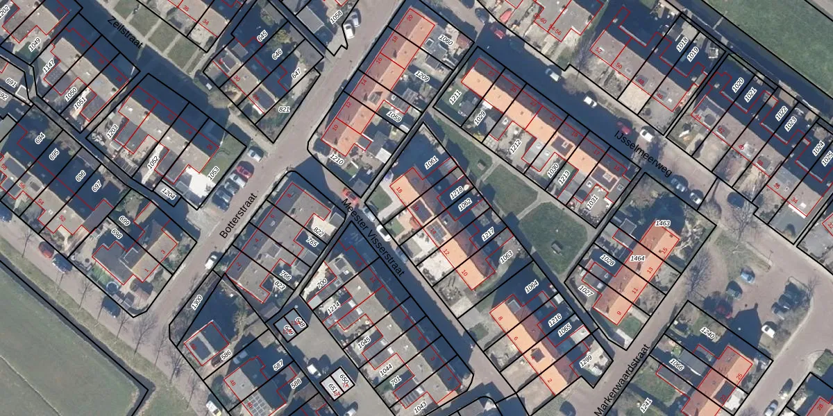 Meester Visserstraat 16 is gelegen op kadastraal perceel MKN00C1218. Deze kadastrale aanduiding is uniek en wordt gebruikt door het Kadaster om eigendomsrechten en andere zakelijke rechten vast te leggen. Het perceel maakt onderdeel uit van de kadastrale gemeente Marken.