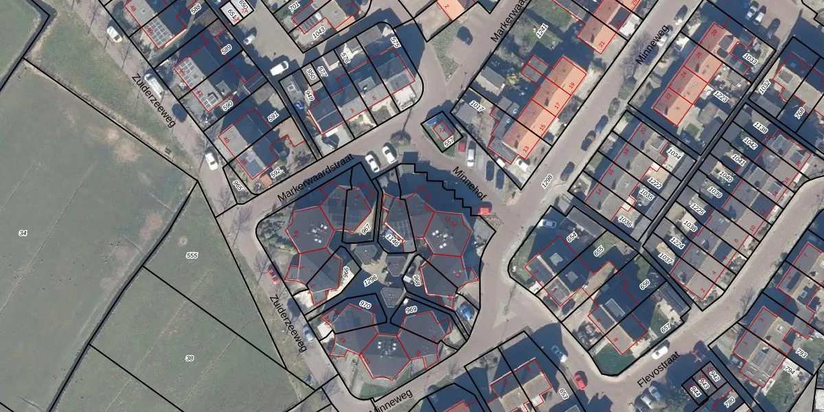 Minnehof 10 is gelegen op kadastraal perceel MKN00C1296. Deze kadastrale aanduiding is uniek en wordt gebruikt door het Kadaster om eigendomsrechten en andere zakelijke rechten vast te leggen. Het perceel maakt onderdeel uit van de kadastrale gemeente Marken.
