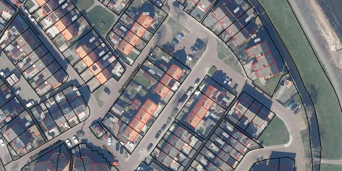 Minneweg 23 is gelegen op kadastraal perceel MKN00C1066. Deze kadastrale aanduiding is uniek en wordt gebruikt door het Kadaster om eigendomsrechten en andere zakelijke rechten vast te leggen. Het perceel maakt onderdeel uit van de kadastrale gemeente Marken.