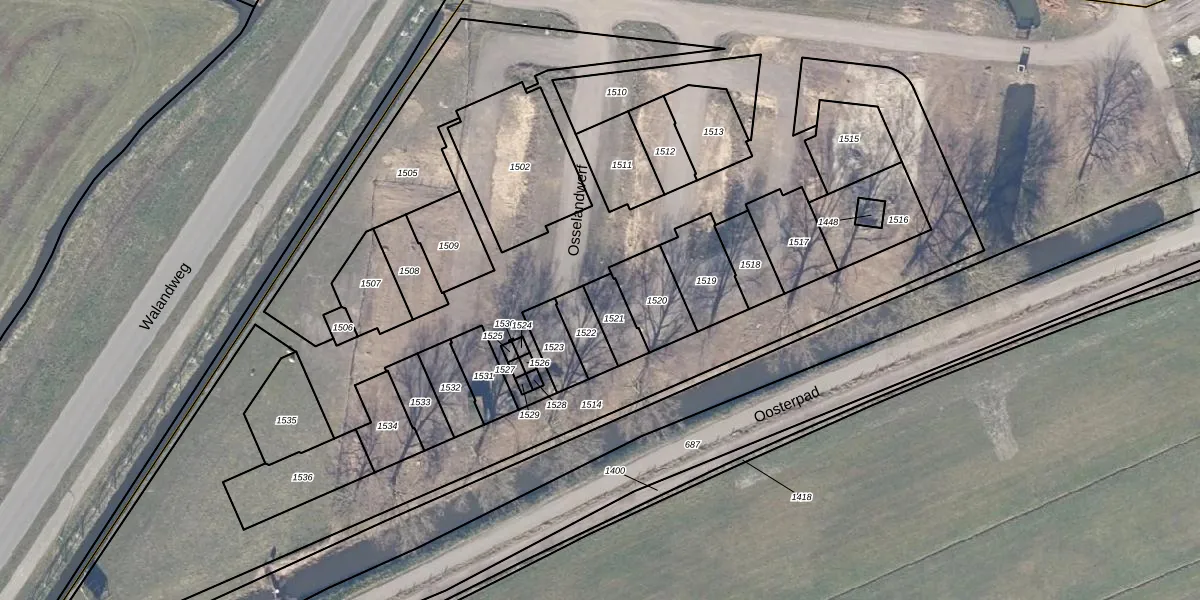 Het perceel waarop Osselandwerf 13 staat heeft een oppervlakte van 80 m². Dit is een klein perceel. De perceeloppervlakte wordt geregistreerd door het Kadaster. Gedetailleerde informatie over de maten van dit perceel kunt u vinden in het rapport Kadastrale kaart met maatvoering van Osselandwerf 13.