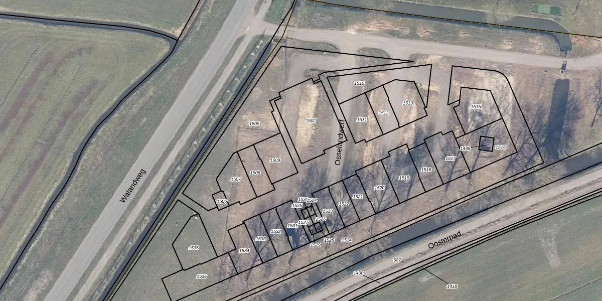 Het perceel waarop Osselandwerf 16 staat heeft een oppervlakte van 399 m². Dit is een groot perceel. De perceeloppervlakte wordt geregistreerd door het Kadaster. Gedetailleerde informatie over de maten van dit perceel kunt u vinden in het rapport Kadastrale kaart met maatvoering van Osselandwerf 16.