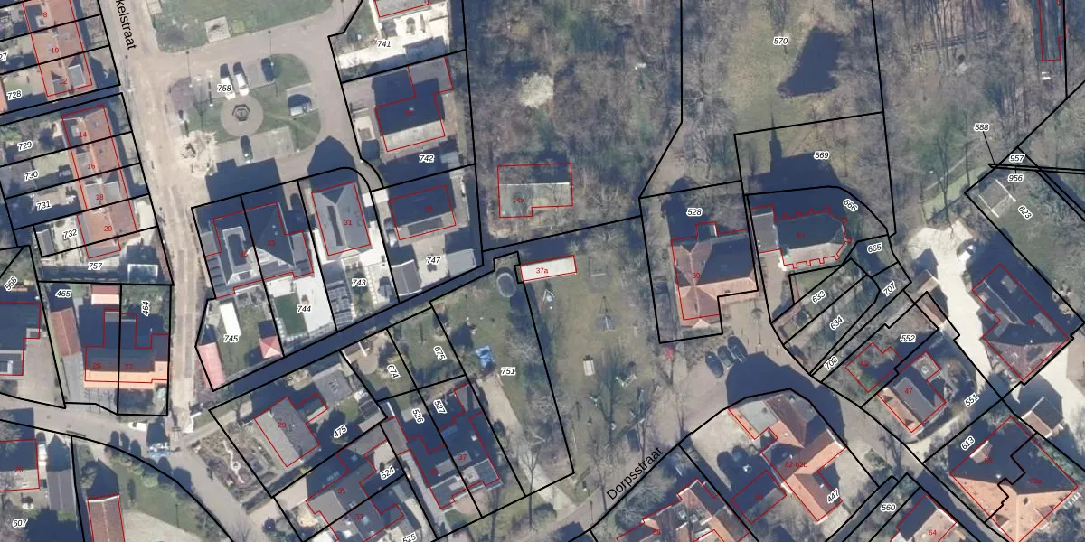 Het perceel waarop Dorpsstraat 37-a staat heeft een oppervlakte van 2,3 ha. Dit is een zeer groot perceel. De perceeloppervlakte wordt geregistreerd door het Kadaster. Gedetailleerde informatie over de maten van dit perceel kunt u vinden in het rapport Kadastrale kaart met maatvoering van Dorpsstraat 37-a.