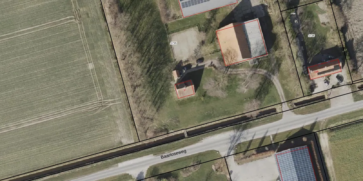 Baarloseweg 17 is gelegen op kadastraal perceel NOP00B1735. Deze kadastrale aanduiding is uniek en wordt gebruikt door het Kadaster om eigendomsrechten en andere zakelijke rechten vast te leggen. Het perceel maakt onderdeel uit van de kadastrale gemeente Noordoostpolder.