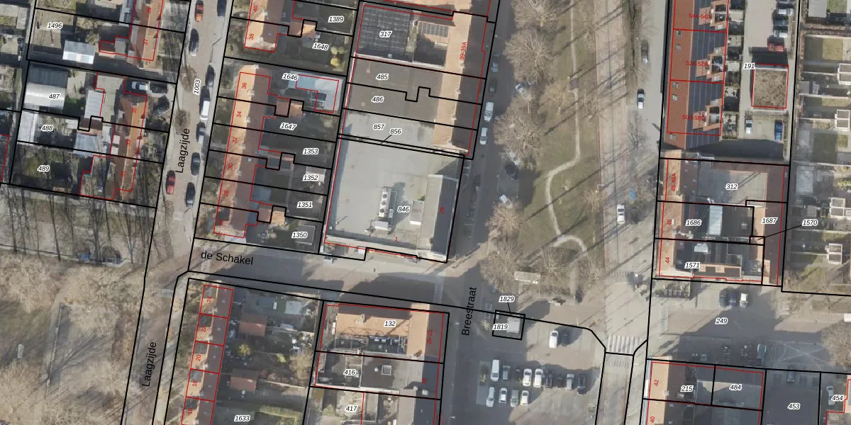 Het perceel waarop Breestraat 29 staat heeft een oppervlakte van 773 m². Dit is een groot perceel. De perceeloppervlakte wordt geregistreerd door het Kadaster. Gedetailleerde informatie over de maten van dit perceel kunt u vinden in het rapport Kadastrale kaart met maatvoering van Breestraat 29.