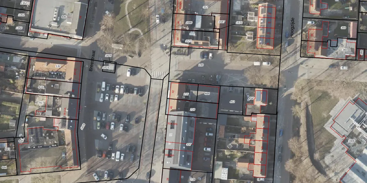 Het perceel waarop Breestraat 42 staat heeft een oppervlakte van 153 m². Dit is een middelgroot perceel. De perceeloppervlakte wordt geregistreerd door het Kadaster. Gedetailleerde informatie over de maten van dit perceel kunt u vinden in het rapport Kadastrale kaart met maatvoering van Breestraat 42.