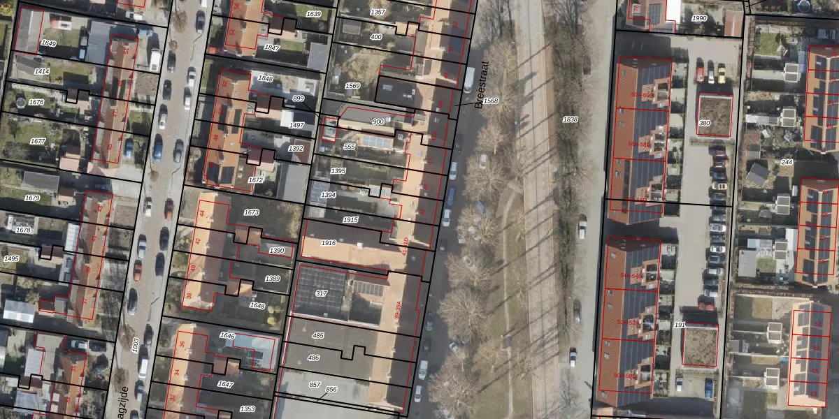 Gebruik de zoekbalk of klik op een perceel voor informatie over de adressen binnen dit perceel.