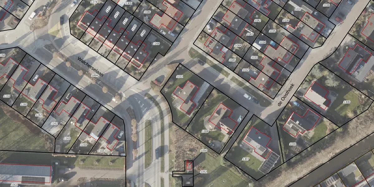 Gebruik de zoekbalk of klik op een perceel voor informatie over de adressen binnen dit perceel.