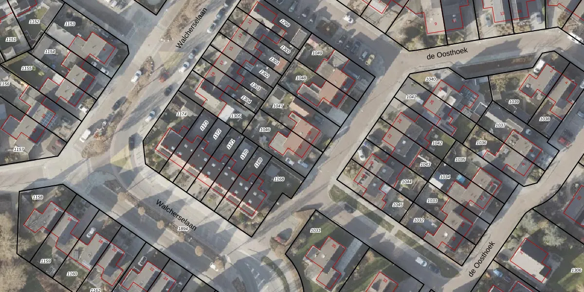 Gebruik de zoekbalk of klik op een perceel voor informatie over de adressen binnen dit perceel.