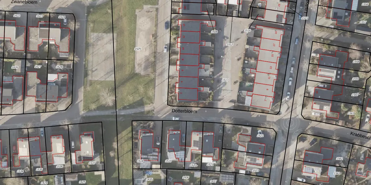 Het perceel waarop Dotterbloem 2 staat heeft een oppervlakte van 3162 m². Dit is een zeer groot perceel. De perceeloppervlakte wordt geregistreerd door het Kadaster. Gedetailleerde informatie over de maten van dit perceel kunt u vinden in het rapport Kadastrale kaart met maatvoering van Dotterbloem 2.