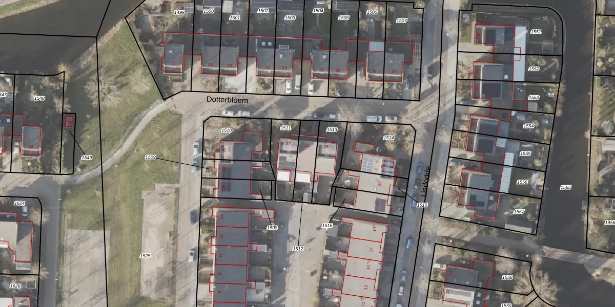 Dotterbloem 24 is gelegen op kadastraal perceel NOP00BZ1512. Deze kadastrale aanduiding is uniek en wordt gebruikt door het Kadaster om eigendomsrechten en andere zakelijke rechten vast te leggen. Het perceel maakt onderdeel uit van de kadastrale gemeente Noordoostpolder.
