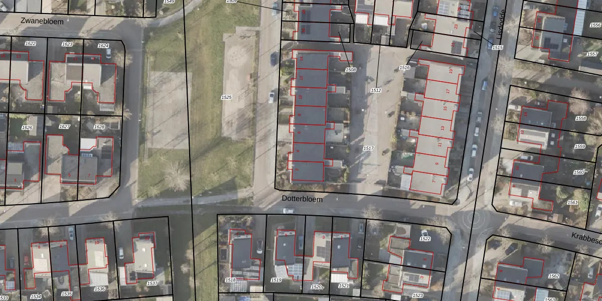 Dotterbloem 4 is gelegen op kadastraal perceel NOP00BZ1517. Deze kadastrale aanduiding is uniek en wordt gebruikt door het Kadaster om eigendomsrechten en andere zakelijke rechten vast te leggen. Het perceel maakt onderdeel uit van de kadastrale gemeente Noordoostpolder.