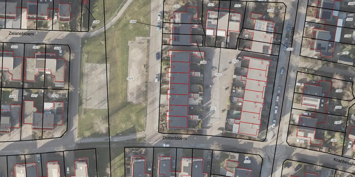 Dotterbloem 8 is gelegen op kadastraal perceel NOP00BZ1517. Deze kadastrale aanduiding is uniek en wordt gebruikt door het Kadaster om eigendomsrechten en andere zakelijke rechten vast te leggen. Het perceel maakt onderdeel uit van de kadastrale gemeente Noordoostpolder.