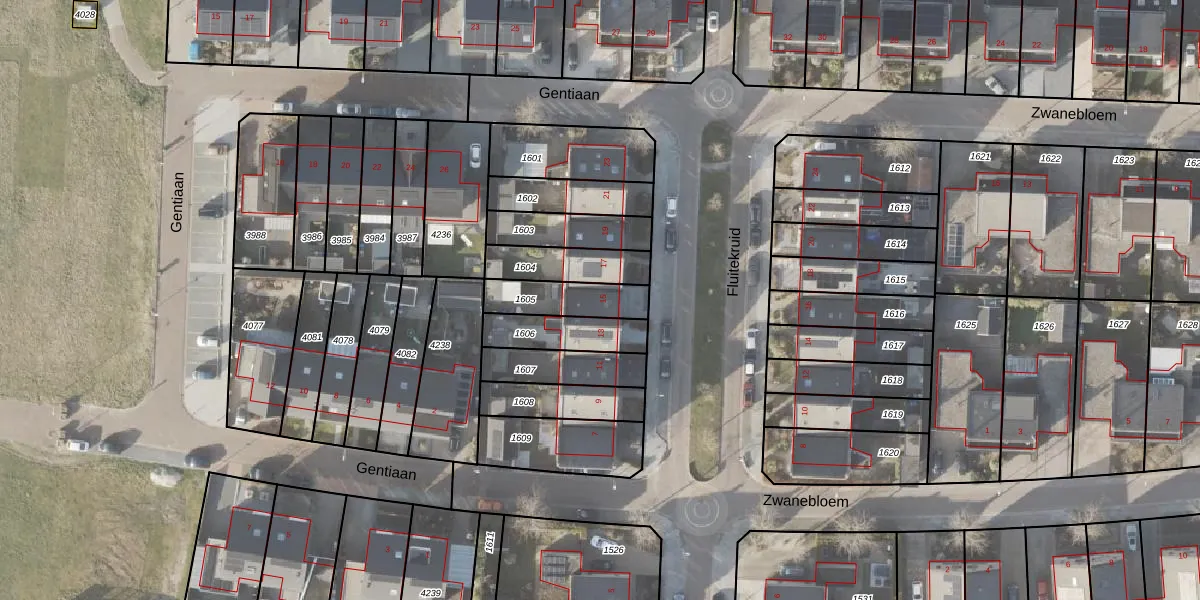 Gebruik de zoekbalk of klik op een perceel voor informatie over de adressen binnen dit perceel.