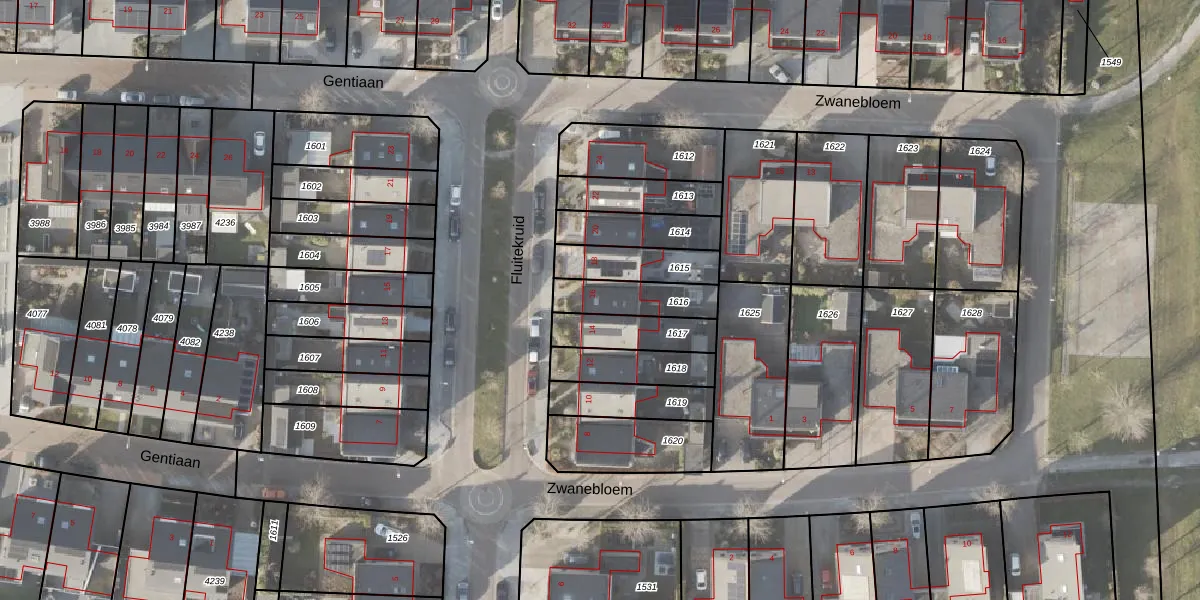 Het perceel waarop Fluitekruid 16 staat heeft een oppervlakte van 157 m². Dit is een middelgroot perceel. De perceeloppervlakte wordt geregistreerd door het Kadaster. Gedetailleerde informatie over de maten van dit perceel kunt u vinden in het rapport Kadastrale kaart met maatvoering van Fluitekruid 16.