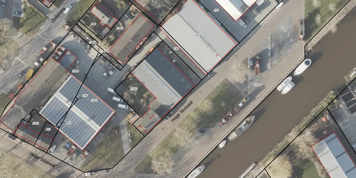 Het perceel waarop Hoge Sluiswal 41 staat heeft een oppervlakte van 1268 m². Dit is een zeer groot perceel. De perceeloppervlakte wordt geregistreerd door het Kadaster. Gedetailleerde informatie over de maten van dit perceel kunt u vinden in het rapport Kadastrale kaart met maatvoering van Hoge Sluiswal 41.