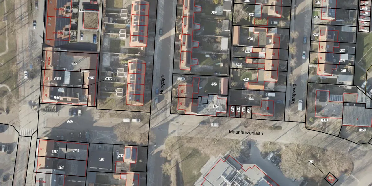 Het perceel waarop Hoogzijde 38 staat heeft een oppervlakte van 358 m². Dit is een groot perceel. De perceeloppervlakte wordt geregistreerd door het Kadaster. Gedetailleerde informatie over de maten van dit perceel kunt u vinden in het rapport Kadastrale kaart met maatvoering van Hoogzijde 38.