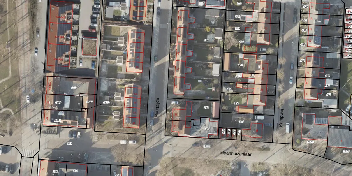 Het perceel waarop Hoogzijde 40 staat heeft een oppervlakte van 1586 m². Dit is een zeer groot perceel. De perceeloppervlakte wordt geregistreerd door het Kadaster. Gedetailleerde informatie over de maten van dit perceel kunt u vinden in het rapport Kadastrale kaart met maatvoering van Hoogzijde 40.