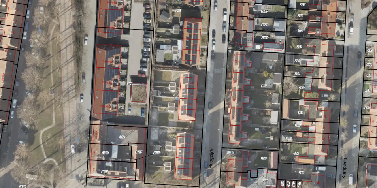Het perceel waarop Hoogzijde 57 staat heeft een oppervlakte van 3735 m². Dit is een zeer groot perceel. De perceeloppervlakte wordt geregistreerd door het Kadaster. Gedetailleerde informatie over de maten van dit perceel kunt u vinden in het rapport Kadastrale kaart met maatvoering van Hoogzijde 57.