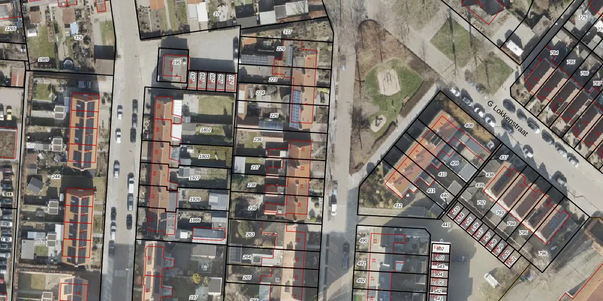 Gebruik de zoekbalk of klik op een perceel voor informatie over de adressen binnen dit perceel.