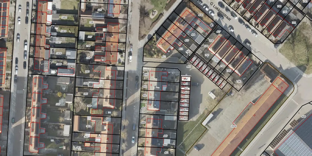 Gebruik de zoekbalk of klik op een perceel voor informatie over de adressen binnen dit perceel.