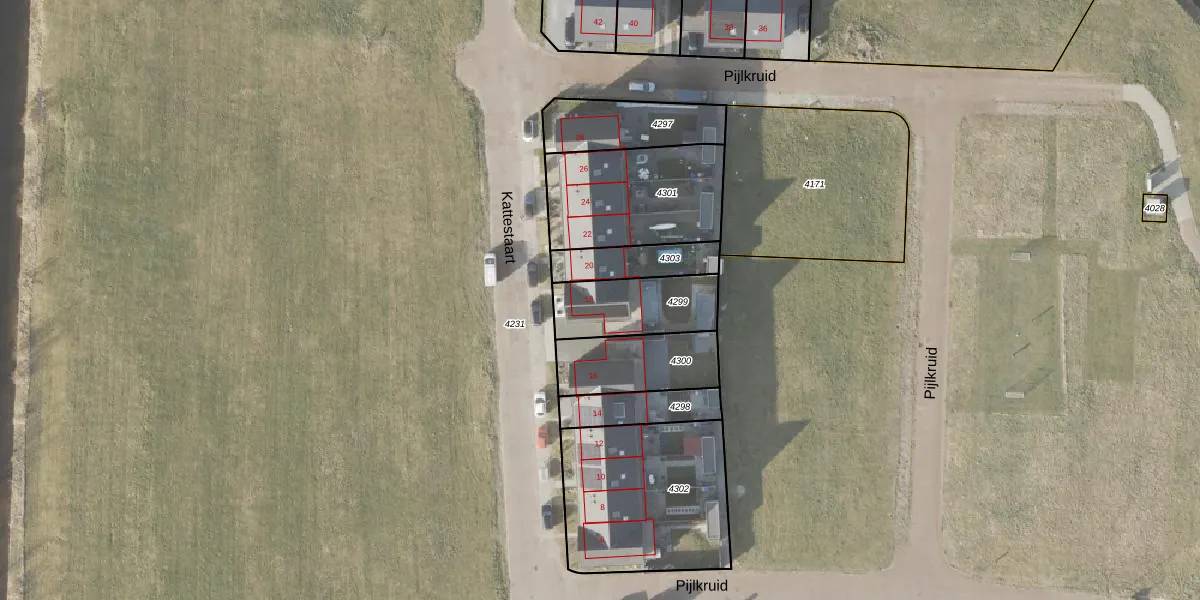 Kattestaart 18 is gelegen op kadastraal perceel NOP00B4299. Deze kadastrale aanduiding is uniek en wordt gebruikt door het Kadaster om eigendomsrechten en andere zakelijke rechten vast te leggen. Het perceel maakt onderdeel uit van de kadastrale gemeente Noordoostpolder.